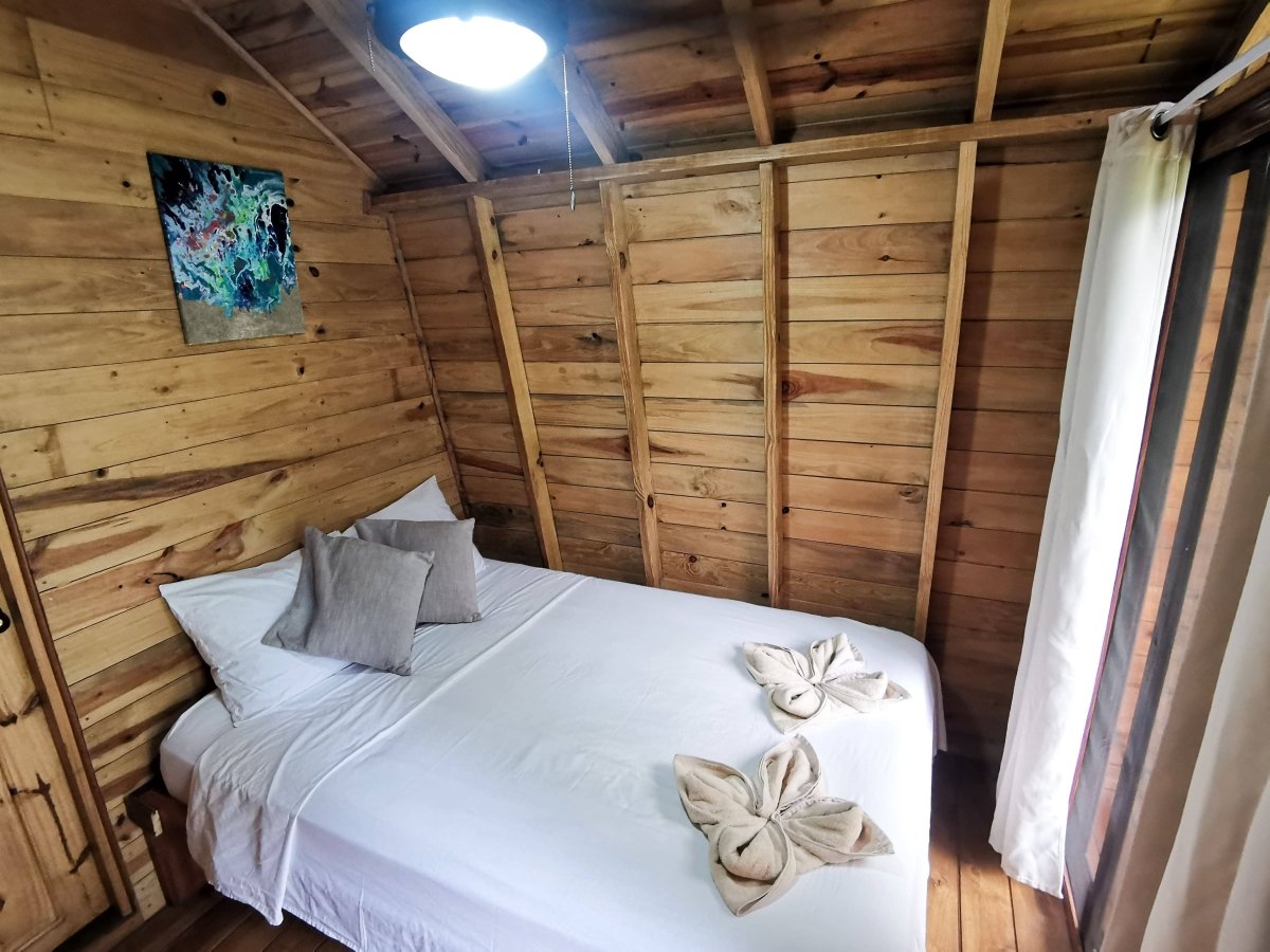- Habitaciones privadas: Son los búngalos o ranchitos, para dos personas, los mismos cuentan con cama doble, abanico y su baño privado y su costo es de B/40.00 la noche.